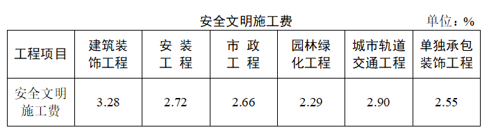 2.2023年11日后新开工的建筑安装工程,以及结转工程未完工部分,安全文明施工费费用标准按下表进行调整: