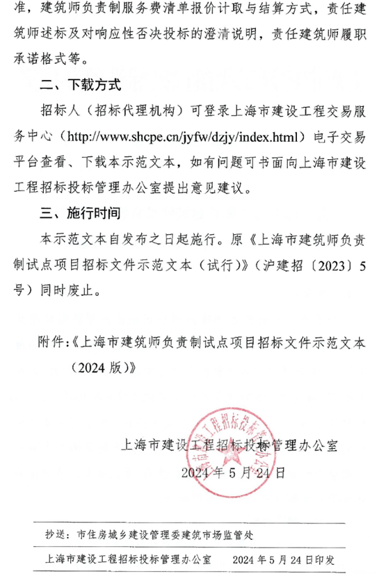 2024版《上海市建筑师负责制试点项目招标文件示范文本》印发
