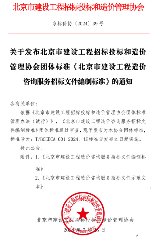 关于发布北京市建设工程招标投标和造价管理协会团体标准《北京市建设工程造价咨询服务招标文件编制标准》的通知