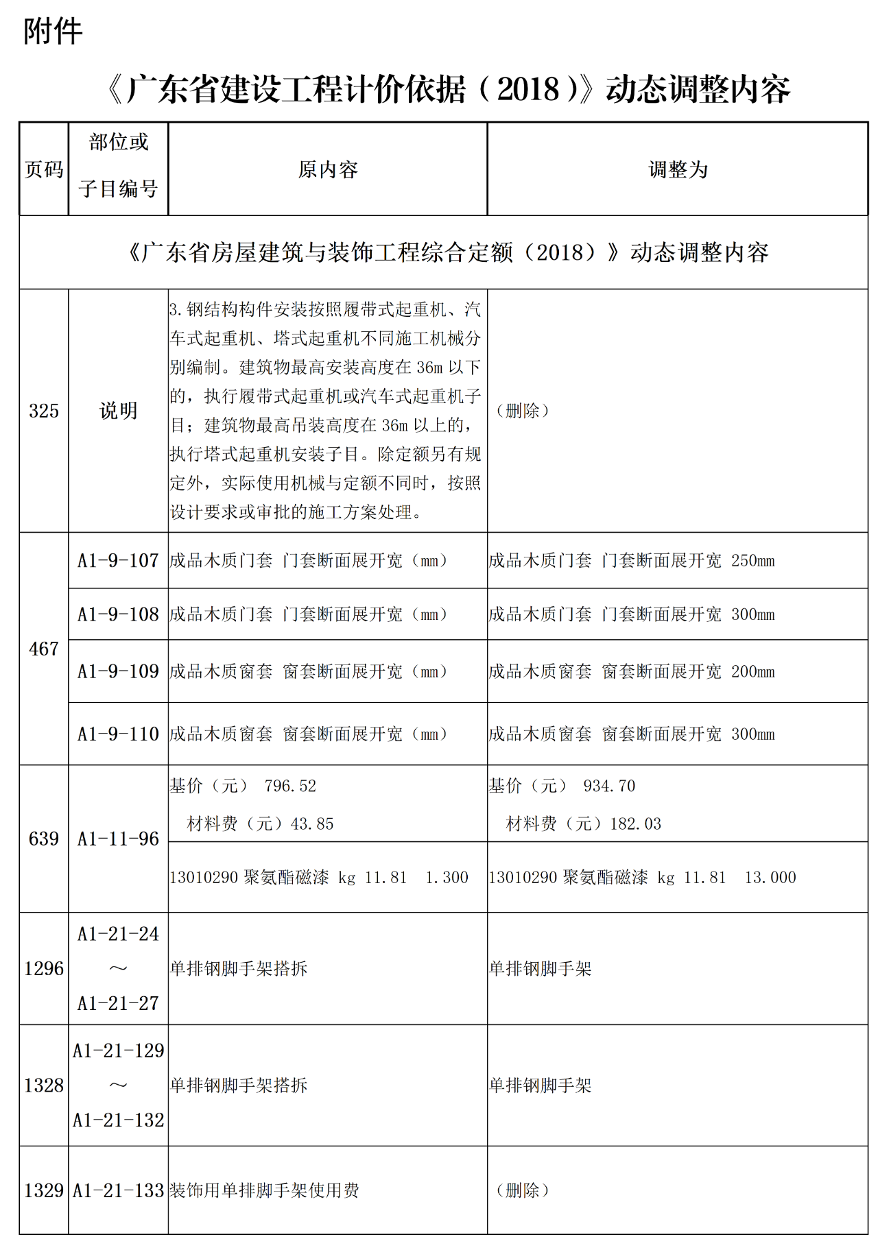 近期,我站组织专家研析了广东省建设工程定额动态管理系统收集的反馈意见,现将《广东省建设工程计价依据(2018)》调整内容印发你们,请遵照执行。本调整内容与我省现行工程计价依据配套使用,除合同另有约定外,已经合同双方确认的工程造价成果文件不作调整。执行中遇到的问题,请通过广东省工程造价信息化平台建设工程定额动态管理系统及时反馈。