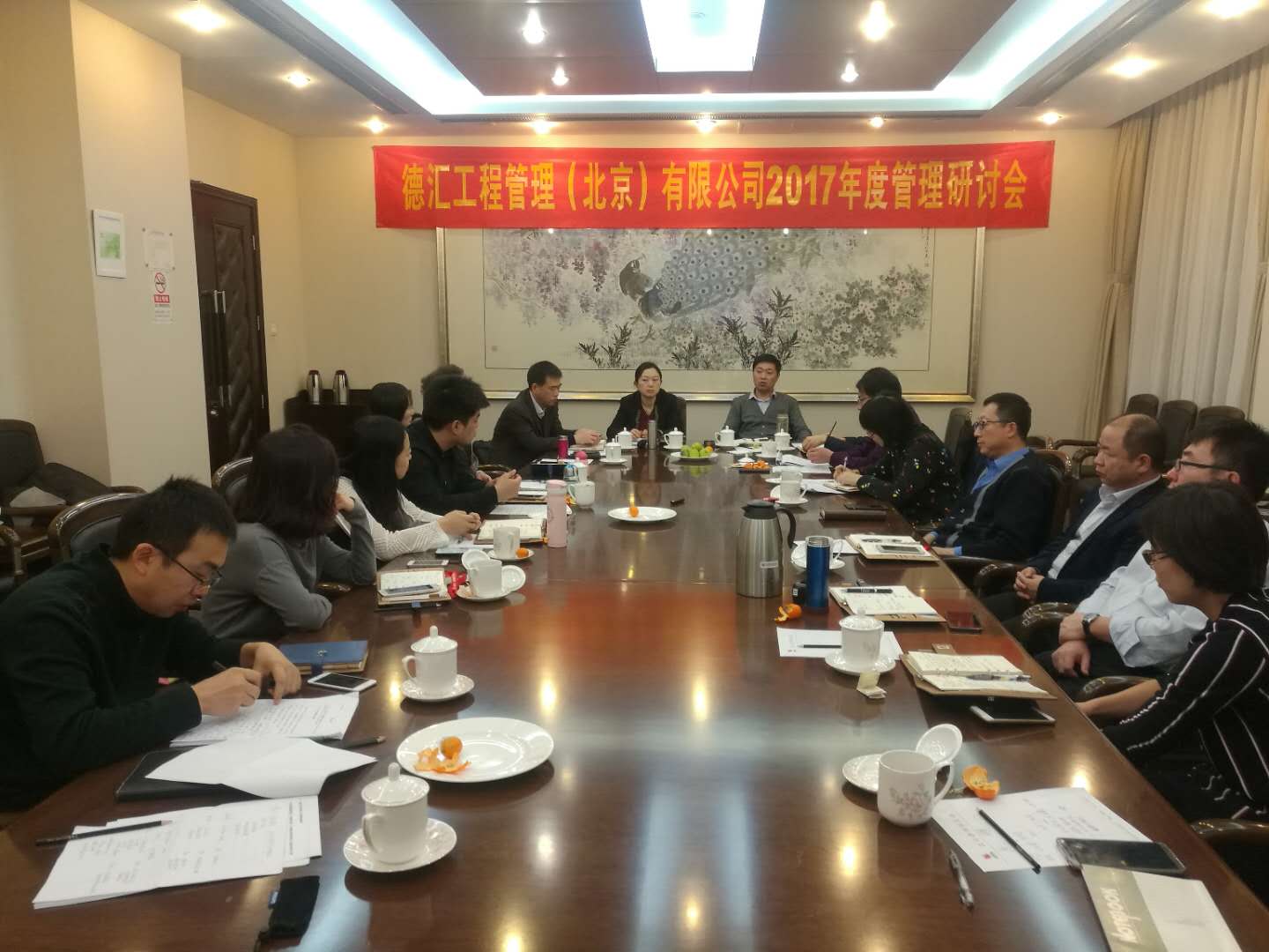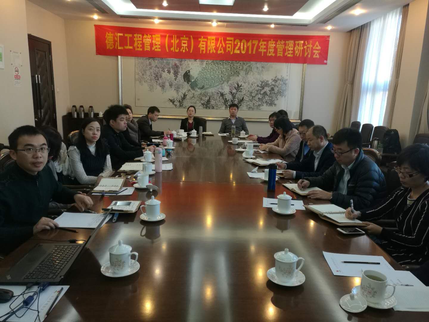 2018年119日,德汇工程管理(北京)有限公司在北京海淀区景明园宾馆召开了2017年度管理研讨会。会议由副总经理谭挺主持,公司管理层18人参加本次会议。