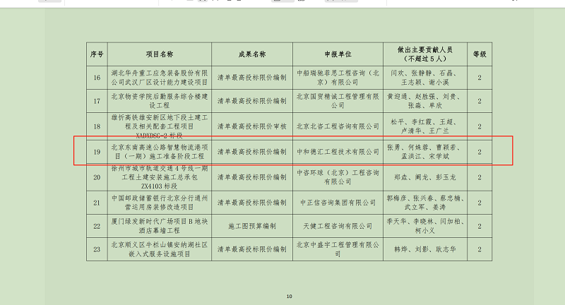 在2025年度北京市建设工程招标投标及造价成果文件等级评定中,我公司承揽的石景山区政务服务中心和档案馆新建工程荣获“全过程造价成果类”一级奖项!北京东南高速公路智慧物流港项目(一期)施工准备阶段工程荣获“清单最高投标限价成果类”二级奖项!