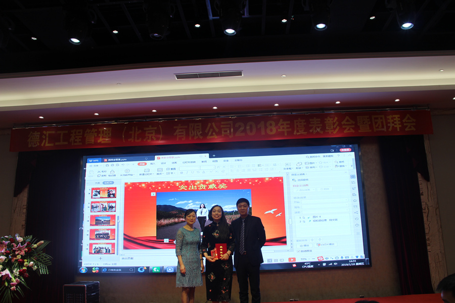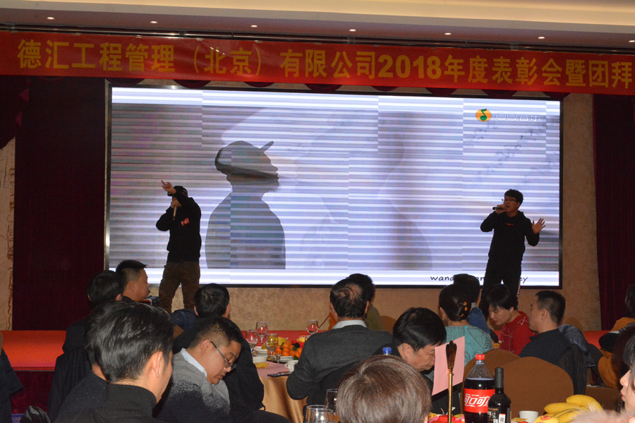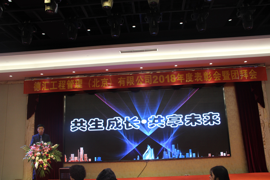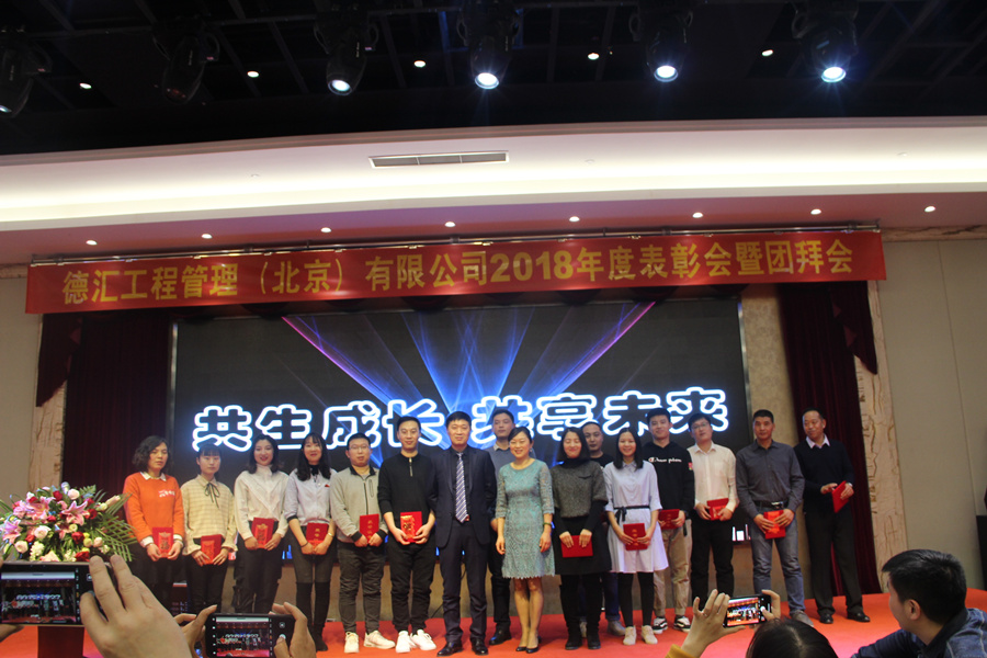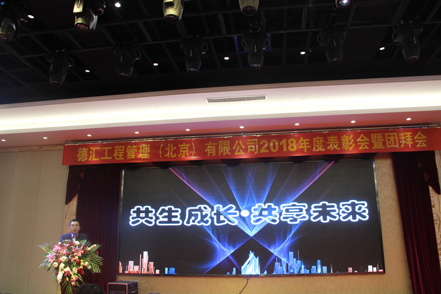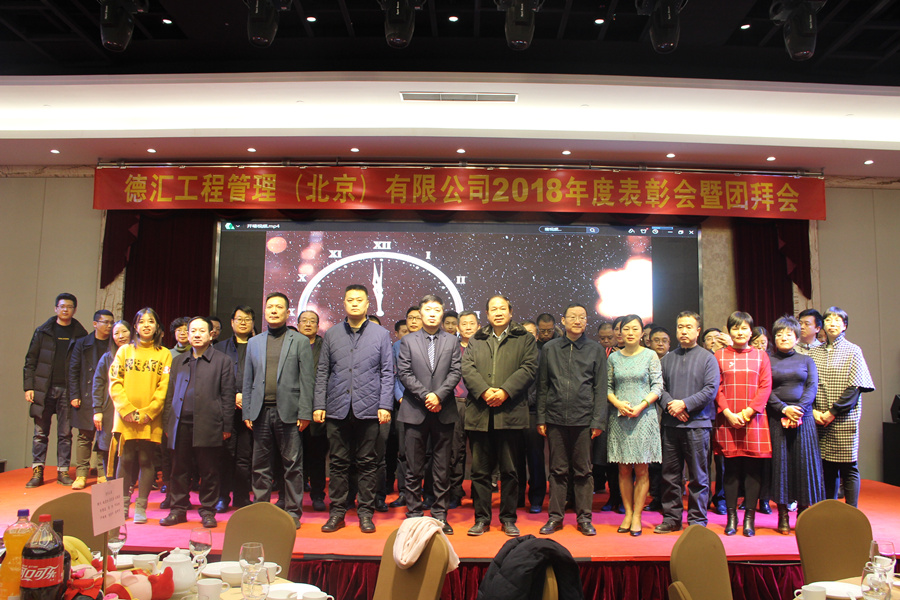 德汇工程管理(北京)有限公司于2019118日(周五)在北京盈坤维景酒店召开2018年度表彰会暨团拜会。集团公司领导、兄弟公司代表、公司领导、分公司和运营中心事业部负责人、公司全体员工共计310余人参加了本次年会。