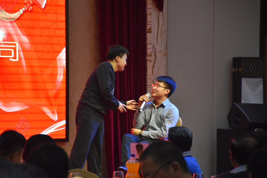 年会上,王维东总经理发表了新年致辞我们连续两年新签合同额和收费额超过亿元大关,同时开启了工程咨询新业务、向政府投资项目高歌猛进,衷心感谢大家多年对德汇公司事业的鼎力支持2019年德汇将迎来15岁生日,我们深知责任和使命,必将德汇塑造为令人尊重的企业谭挺副总经理宣读了2018年度表彰决定,并进行了颁奖,陆文英代表发言,表达了继续为公司勤恳工作的决心;由魏静芝指挥开场大合唱《我们走在大路上》,提振了整个年会的气势和气氛,各部门陆续带来精彩纷呈的表演;詹芙蓉董事长发表了祝酒词,晚宴正式开始,在晚宴进行过程中,穿插了紧张刺激的抽奖和游戏环节,晚宴一次又一次推向高潮