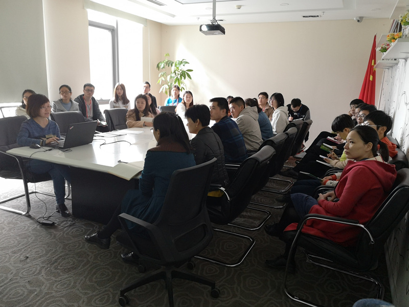 3月29日上午九点,公司组织今年第一季度新员工入职培训,造价事业四部总经理桑春介绍了公司基本情况和业务业绩,综合部人力专员李淼介绍了公司行政和人事相关制度规定。