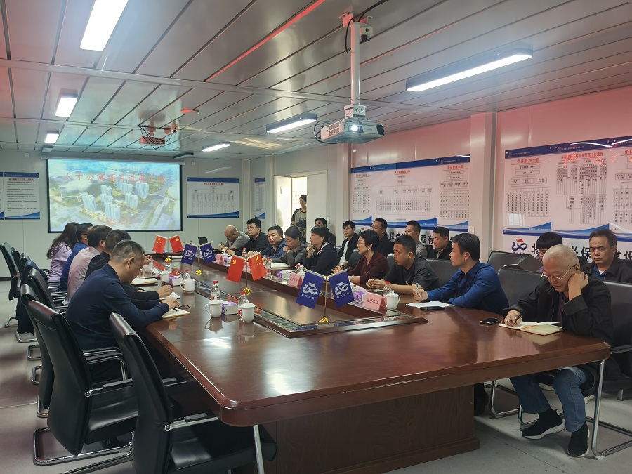 10月10日,秋高气爽,朝阳国际科技发展集团董事长、总经理等班子成员一行6人来到施工现场进行调研,这也是深入学习贯彻习近平新时代中国特色社会主义思想主题教育活动的实际行动。中和德汇公司董事长、项目主管及驻场负责人应邀参加了会议。